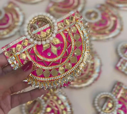 Beautiful Handcrafted Gota Moti Work Gift Bags – Pack of 10