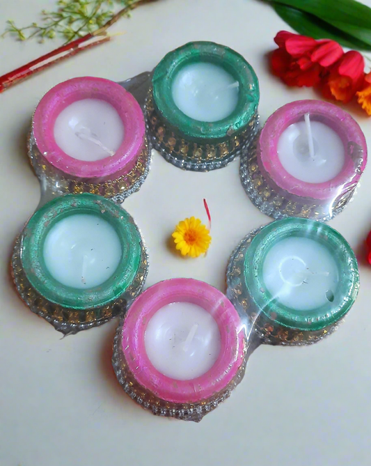 Stone gota lace work Matki designer terracotta wax diya 🪔 7*inch round/ h 2*inch pack of 6