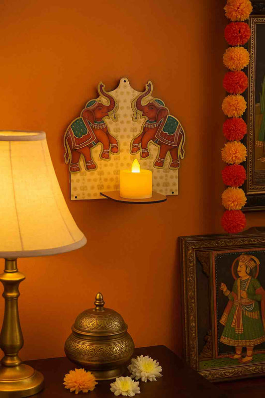 Subh labh Elephant pichwai Tealight diya stand pack of 2
