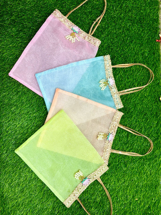 Tissue Organza Gift Bags | Set of 12 Return Gift, Wedding & Festive Packing Bags (Assorted Colors)