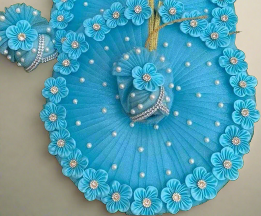 Tyohar special Sky Blue Floral Pearl Ladoo Gopalji Poshak with Pagri🌹