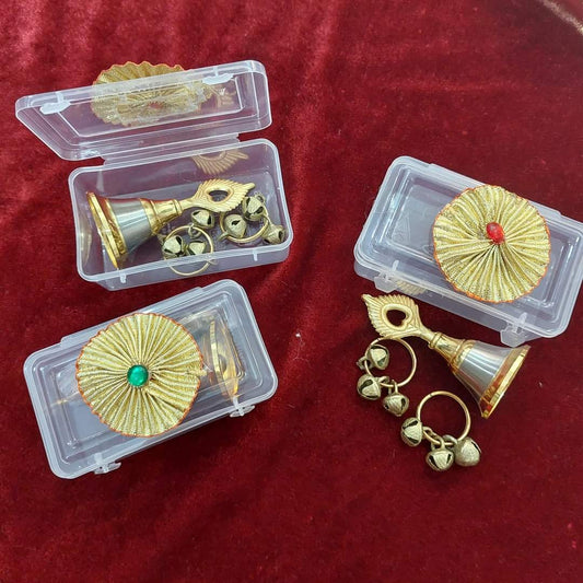 Brass Ghungroo Ring Pair with Bell – Pack of 10 | Traditional Wedding Accessory with Box