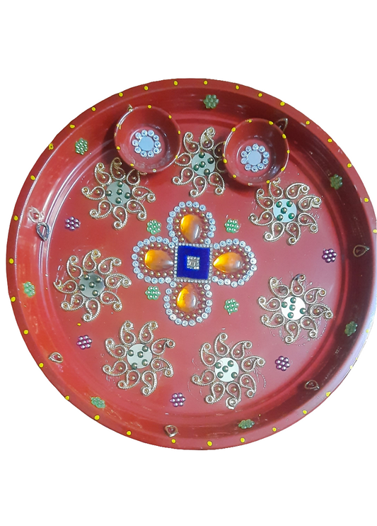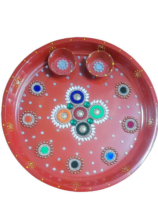 Decorative rangoli style puja thali with 2 bowl 🌹size 11.5*inch