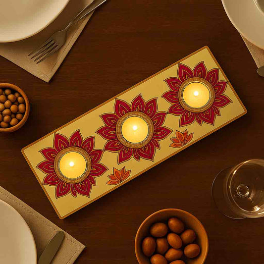 Decorative designer MDF Rangoli plates with tealight 6"inch pack of 2