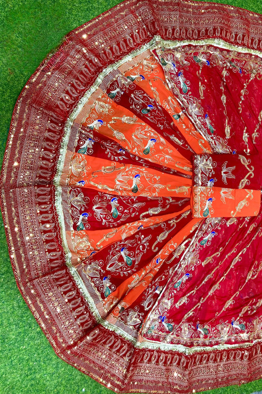 DESIGHNER 6 MTR GHER Premium Qualitya Crep silk Fabric with Royal pure OdhaniHevy Fancy Boder work Royal Rajputi poshak
