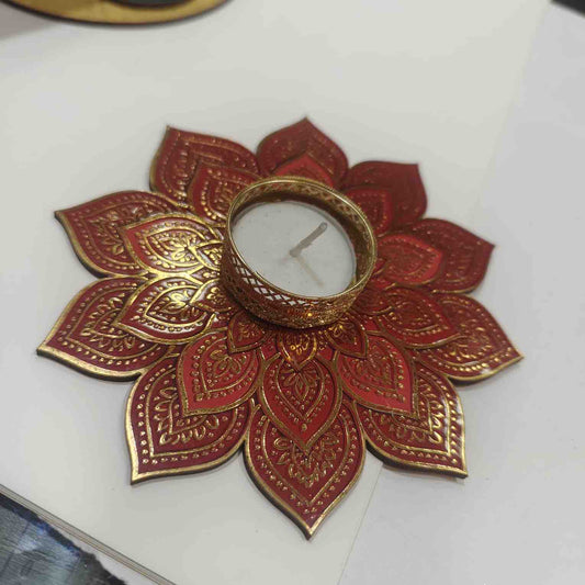 Decorative designer MDF Rangoli plates with tealight 6"inch pack of 2