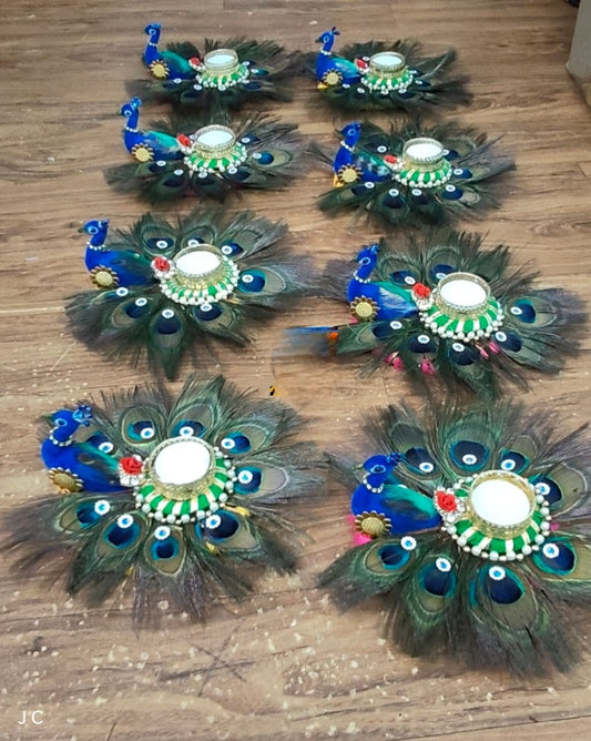 Peacock design handcrafted beautiful tealight pack of 2