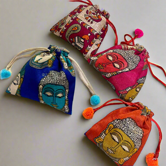 Kalamkari gift potli bags 🌹pack of 3 suze : L 5* H 5* inch perfect for gifting/Mangal path/Haldi kumkum
