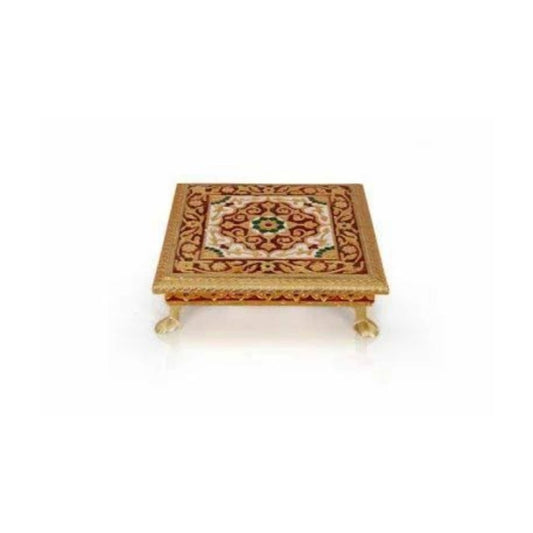 Decorative Wooden Pooja Pata (Chowki) with Meenakari Work | Traditional Puja Platform for Home Temple, Wedding & Festive Gifting