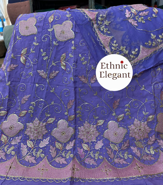 Elegant Upada Crepe Rajputi Poshak Set | Pure Odhna with Aari Taari Hand Work | Boutique Ethnic Wear