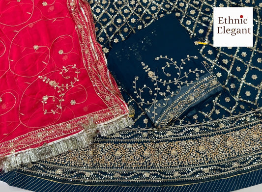Designer Rajwadi Lehanga Poshak Set | Premium Georgette Fabric with 4.5 MTR Gher | Heavy Velvet Border & Zari Work