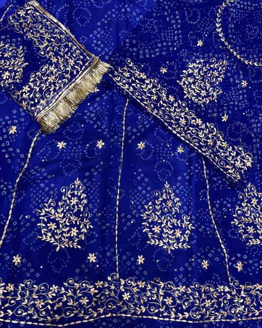 Humrai Pure Bandhej Samundar Laheria Pitrani Poshak | Resham Kasab Work | 4-Side Border Odhna | Aari Magji & Gota Kiran