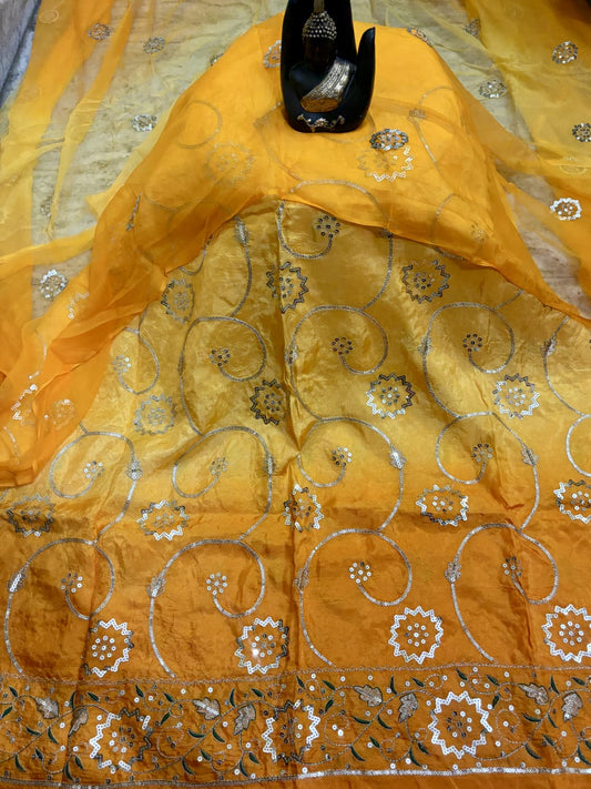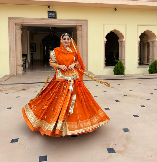 Tissue Fabric Rajputi Poshak Set | Pure Odhni with Gota Laffa & Sikhiya Work | Partywear Ethnic Suit