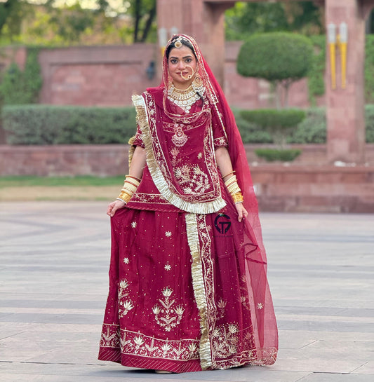 Luxury Upada Fabric Rajputi Poshak Set | Resham, Taara & Katdana Handwork | Pure Odhna & Free Poshak Box