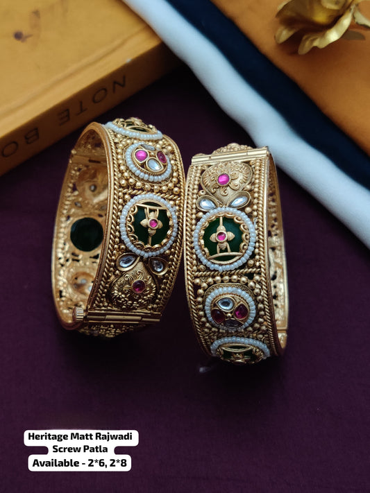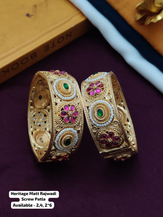 Rajwari Elegant Screw Patla Bangle – Heritage Gold Tone Kada pair