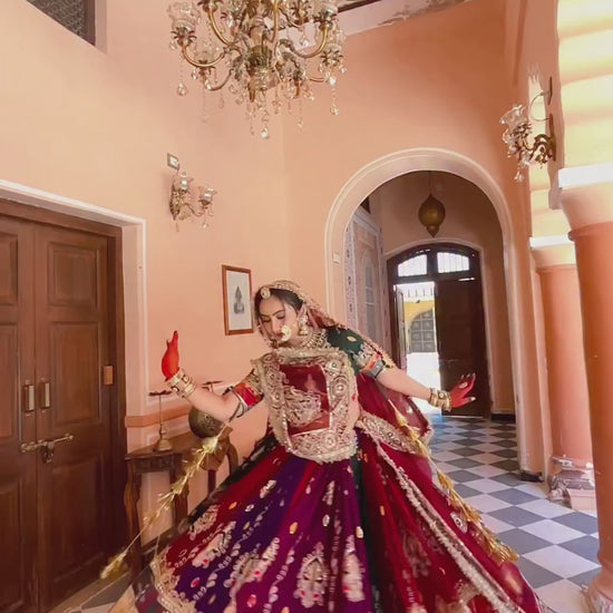 DESIGHNER 6 MTR GHER Premium Qualitya Crep silk Fabric with Royal pure OdhaniHevy Fancy Boder work Royal Rajputi poshak