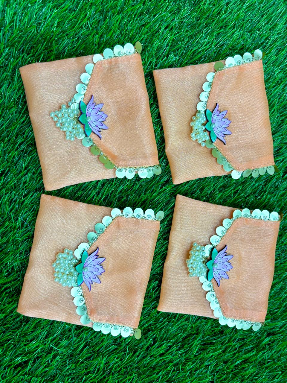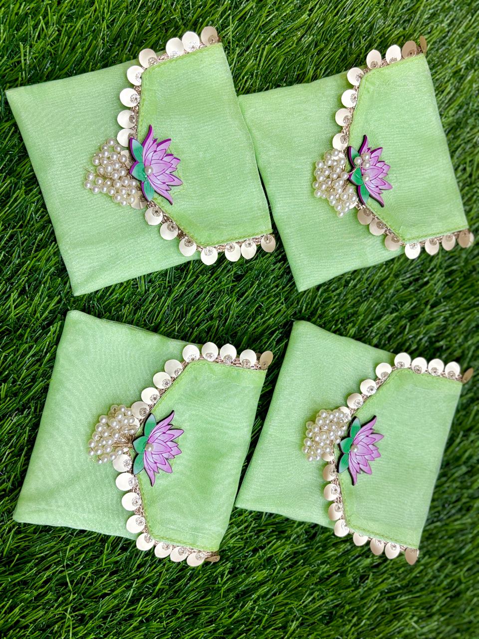 Lotus Embellished Organza Coin Pouch with Moti Latkan (Pack of 20) | Designer Shagun Bags