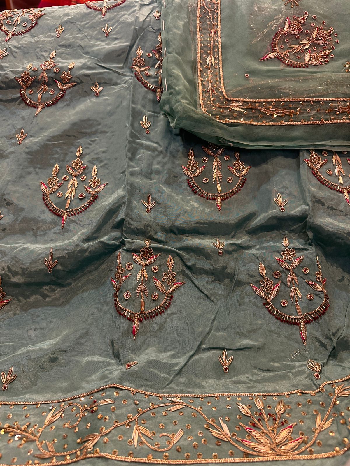 Intricately detailed heavy jardoji & dabka work for a royal finish
