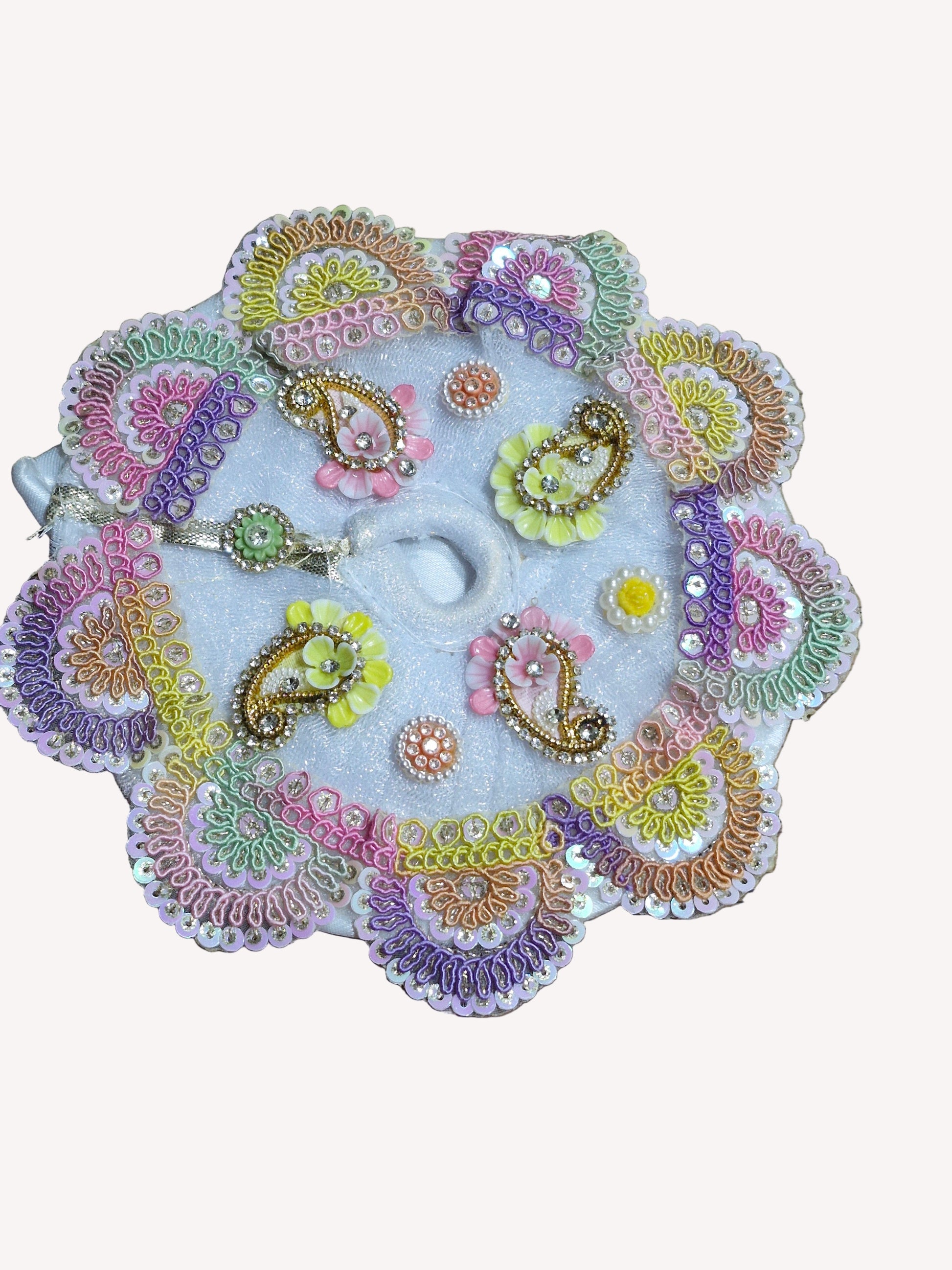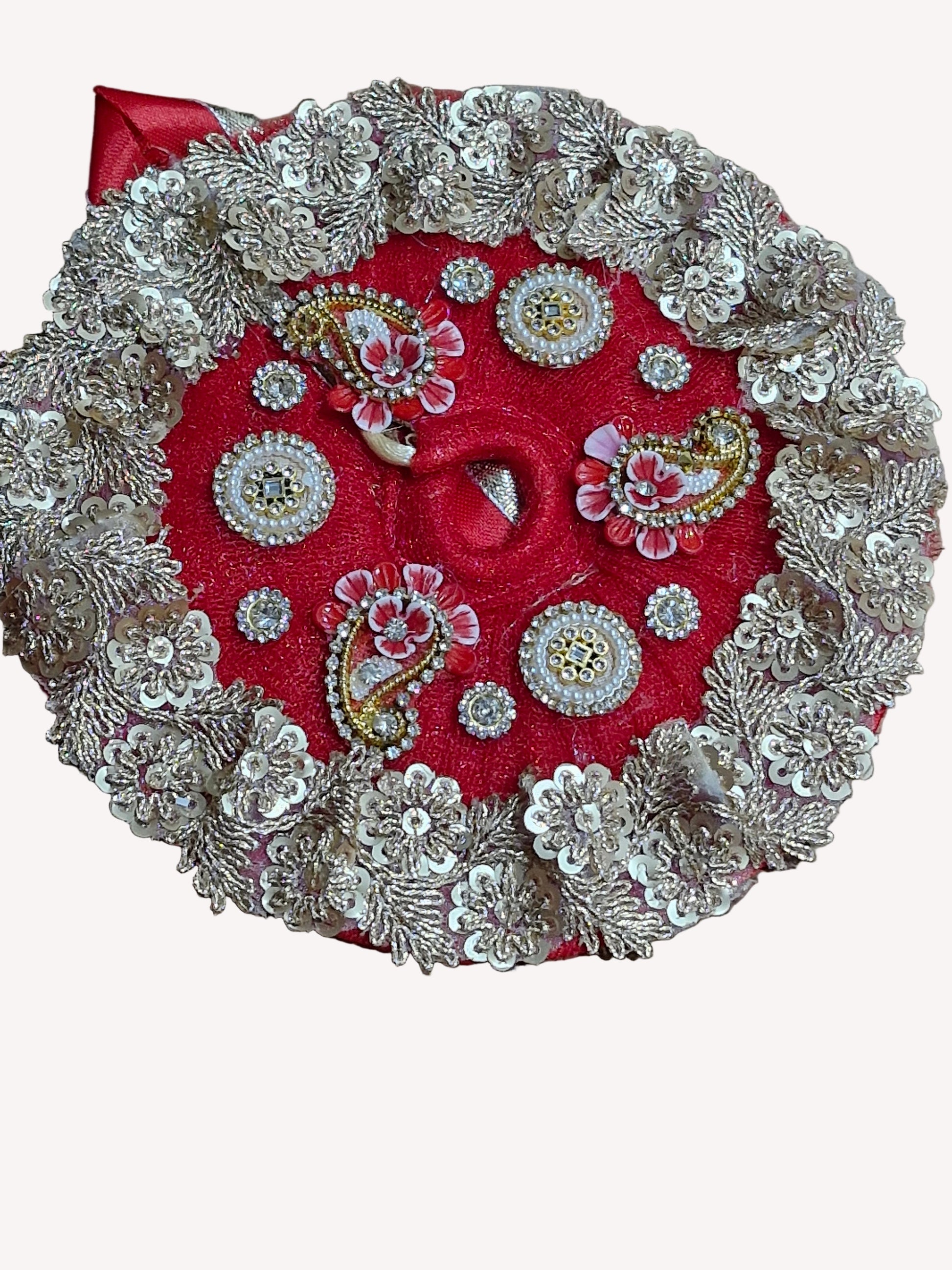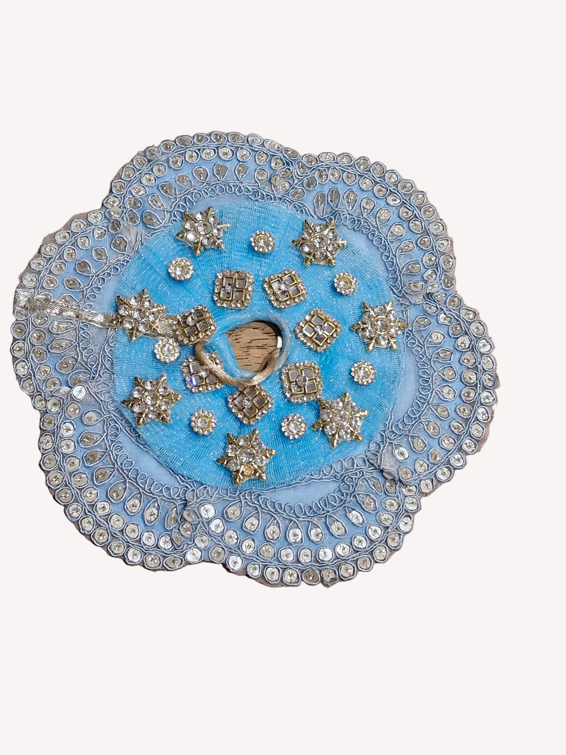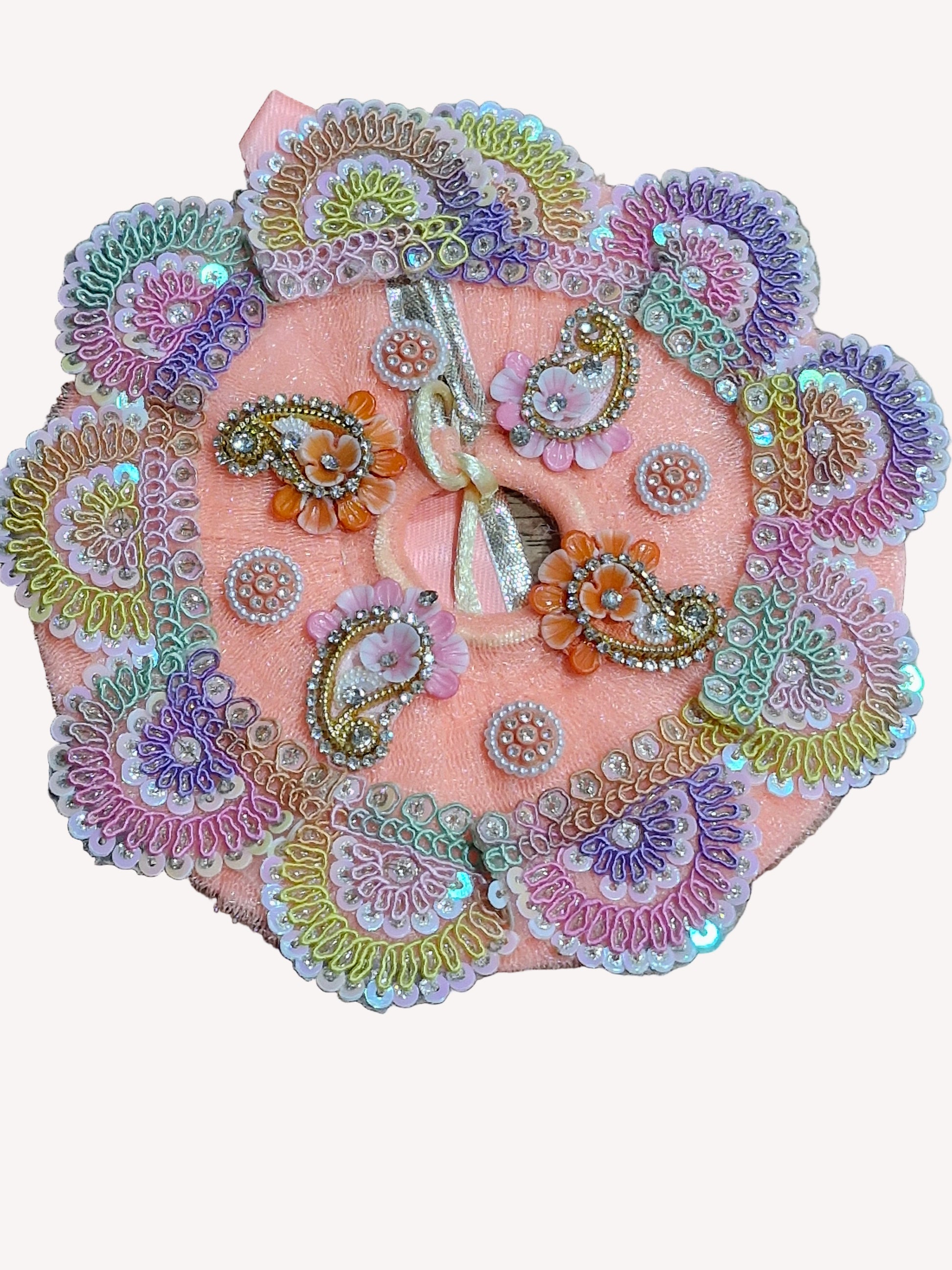 Beautiful golden jari work ladoo gopalji poshak size 6 inch